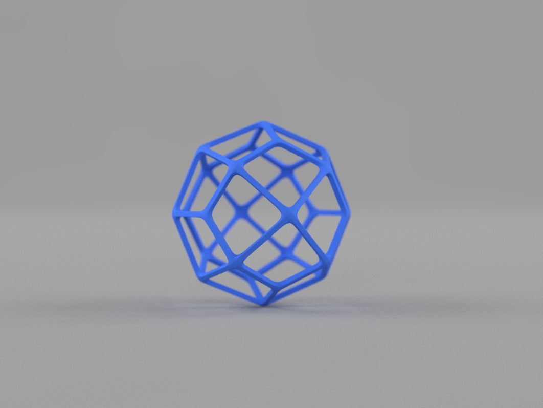 This is a wireframe model of one of the thirteen types of Catalan polyhedra. Each of its 24 faces is the same symmetric kite shape. Select white for best value, or add $10 to have the model dyed blue.