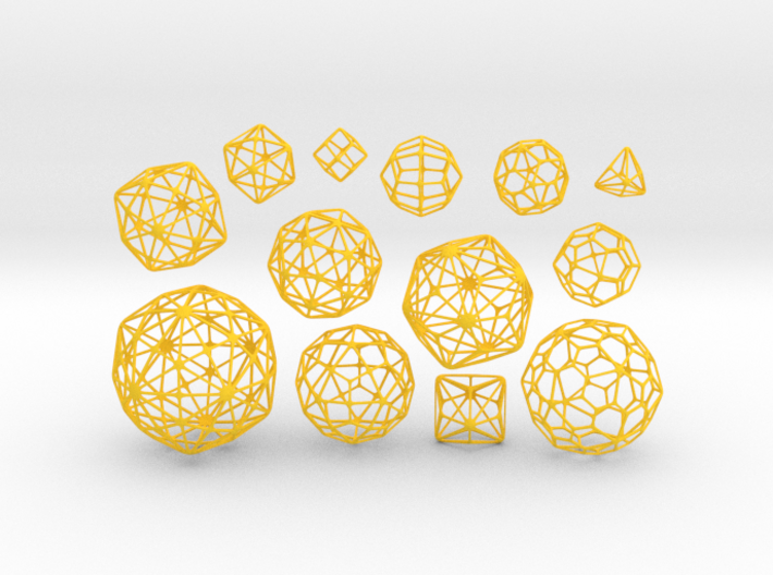 Order medium-sized versions of all thirteen Catalan polyhedra at once for a great value! Choose white for the greatest value, or add $30 to have all of the models dyed in any color you like.